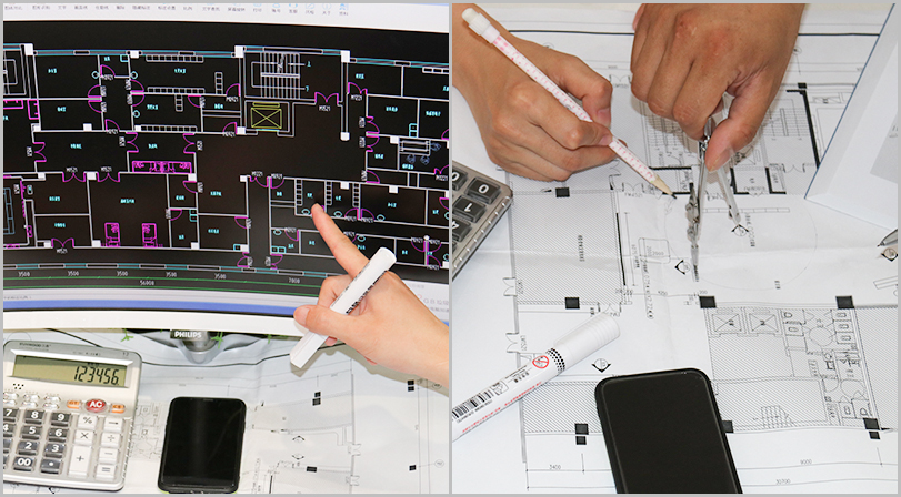 每承接一個工程,公司都會派出經(jīng)驗(yàn)豐富的技術(shù)團(tuán)隊(duì)上門勘察、實(shí)地測量,提供工程設(shè)計(jì)方案。測量各個房間尺寸及造型情況,做好記錄,做到心中有數(shù)。
